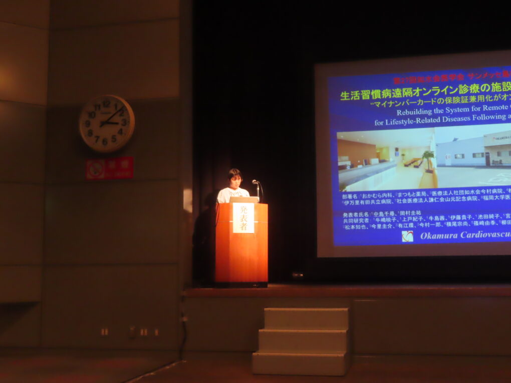 当院メディカルクラークが、如水会今村病院の研究会(鳥栖サンメッセ)にて当院で行っている生活習慣病遠隔オンライン診療についての発表を行いました。